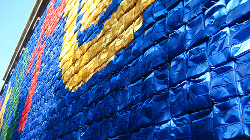 For example, the marquis installation for So Sorry was a piece called Remembering, made of 9,000 colourful, child-sized backpacks tiled across the front of Munich’s Haus der Kunst. There is something seductive about the piece — it has poppy colours and the backpacks are cute. It’s art that has a basic aesthetic value and that draws people in. But the deeper meaning is both haunting and clear: the backpacks represent myriad young live lost in the 2008 Sichuan earthquake — lives that might not have been lost if their schools hadn’t been built with shoddy, so-called “tofu” construction.