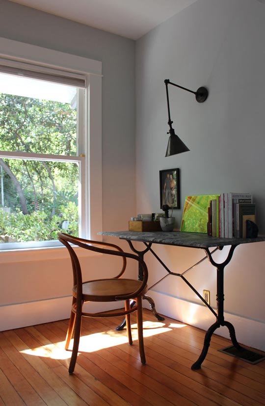 And I would add a vintage writer’s desk, like the one above which I spotted on Apartment Therapy. The Michael Thonet-style chair is a nice touch, too.