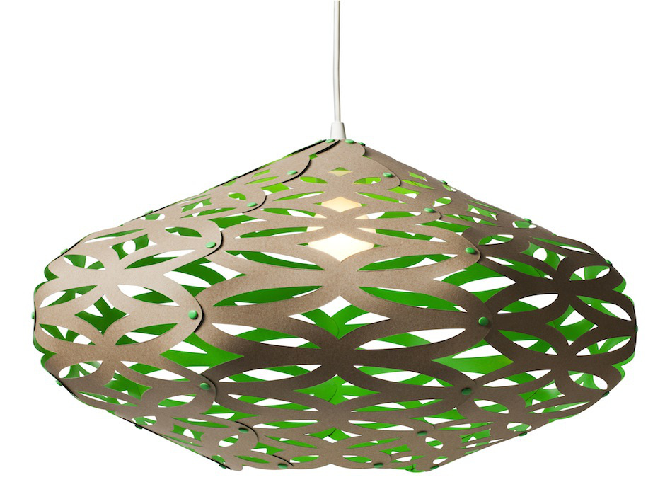 Otra – a Quebec-based studio started in 2011 by recent design grads Julie Ferrero and Guillaume Darnajou – upcycles cardboard by incising it with edgy patterns and adding bursts of colour. Its Craft lampshade is held together with brightly hued tacks to avoid using glue. The crisscrossing cutout creates beguiling shadows. Through otra-design.com.