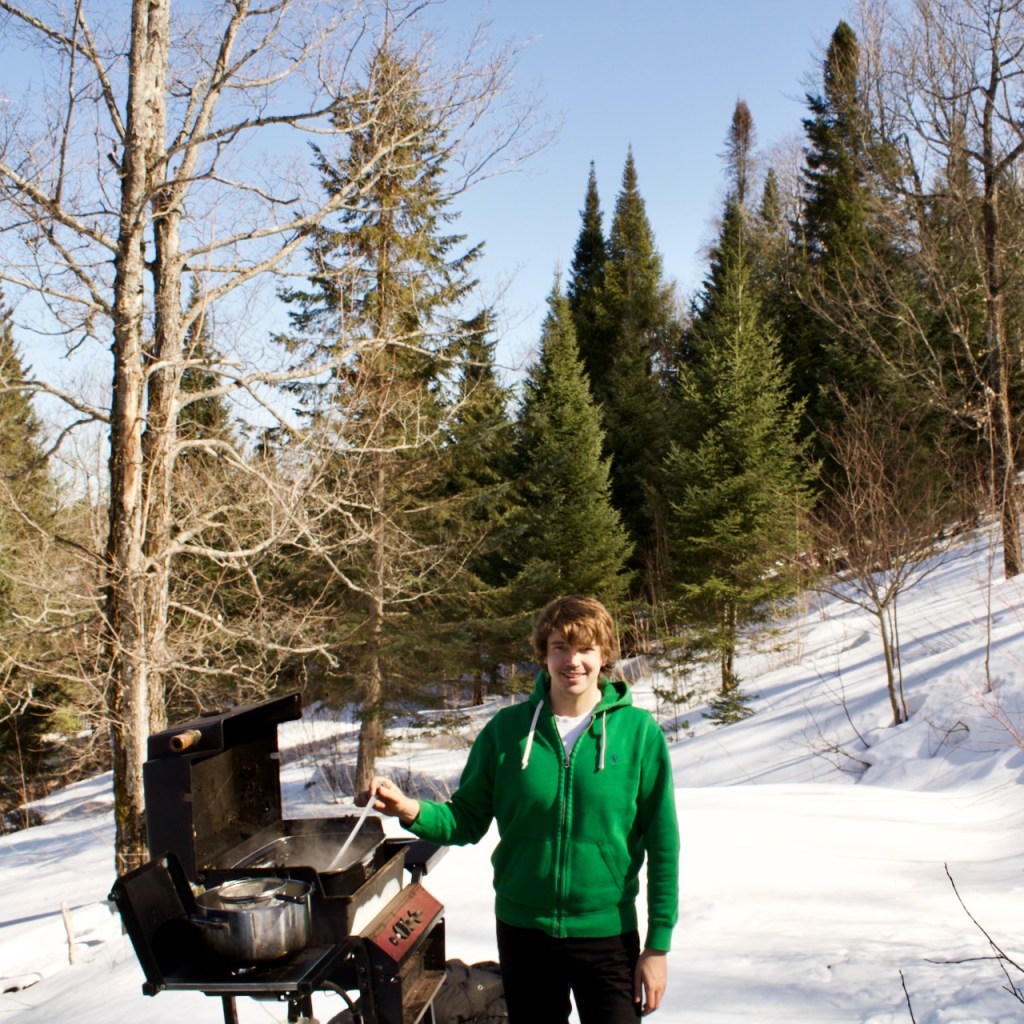After sitting outside in the snow, watching pot after pot after pot after pot of maple sap boil down on our barbecue, I can officially say I no longer hate nor fear winter. Without winter, there would be no maple syrup. And fresh, homemade maple syrup is *$&%%* awesome. It’s a joyful thing when the late winter temperatures start to rise again, and the frozen sap in the maple trees begins to run. We’ve collected over 40 litres of sap so far. Often I’ve had to remove my parka to stop myself from sweating. I don’t know if we’ll ever have the chance to make maple syrup again. I imagine that at some point, Matthew will have to go back to his office and that means returning full-time to Toronto. I don’t want to think about that. We have lived in the Laurentians so many months now it feels like home. Still, Matthew tells me that when we send out our maple syrup to friends and family, we should ask them to keep their bottles so that we can re-fill them in the future, the next time we stand knee-high in snow waiting for the sap to boil. I’m already looking forward to that day.